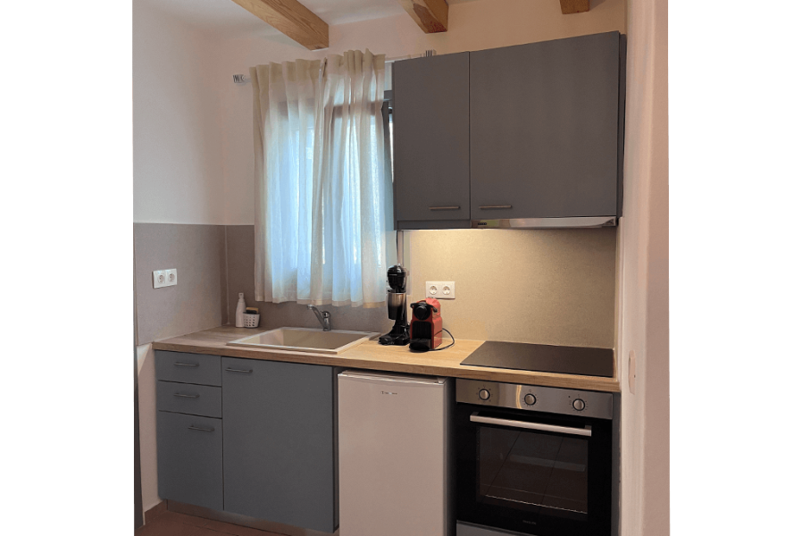 - Πλήρως εξοπλισμένη κουζίνα (Μαγειρικά σκεύη, καφετιέρες Espresso, γαλλικού).