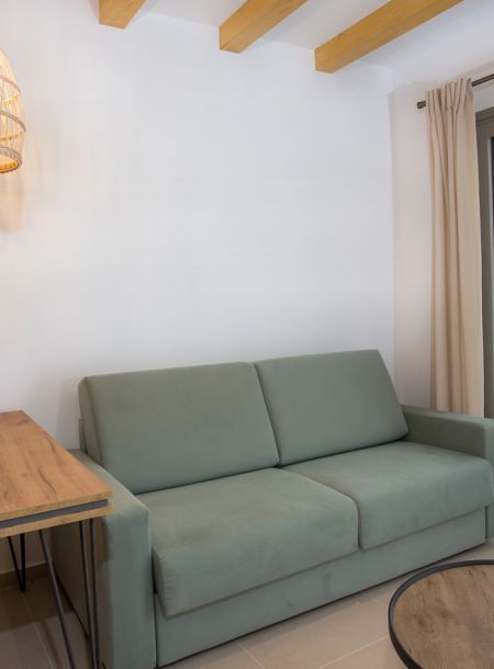 - Άνετα κρεβάτια φτιαγμένα από ξύλο, που μας μεταφέρουν στην ζεστή και λιτή ατμόσφαιρα του νησιώτικου περιβάλλοντος της Σκύρου.