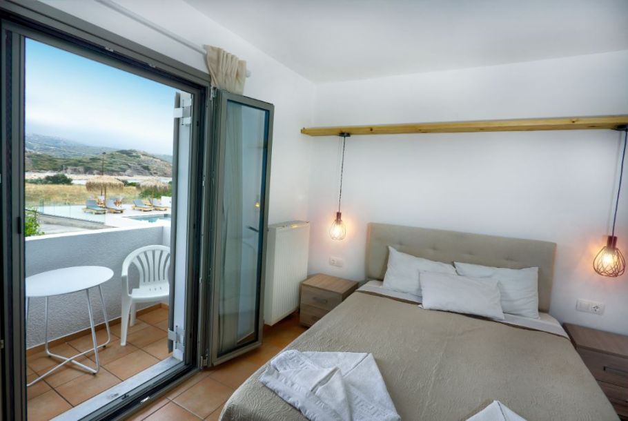 - Άνετα κρεβάτια φτιαγμένα από ξύλο, που μας μεταφέρουν στην ζεστή και λιτή ατμόσφαιρα του νησιώτικου περιβάλλοντος της Σκύρου.