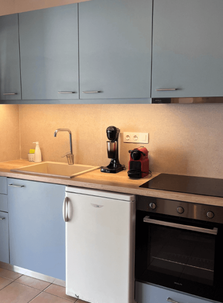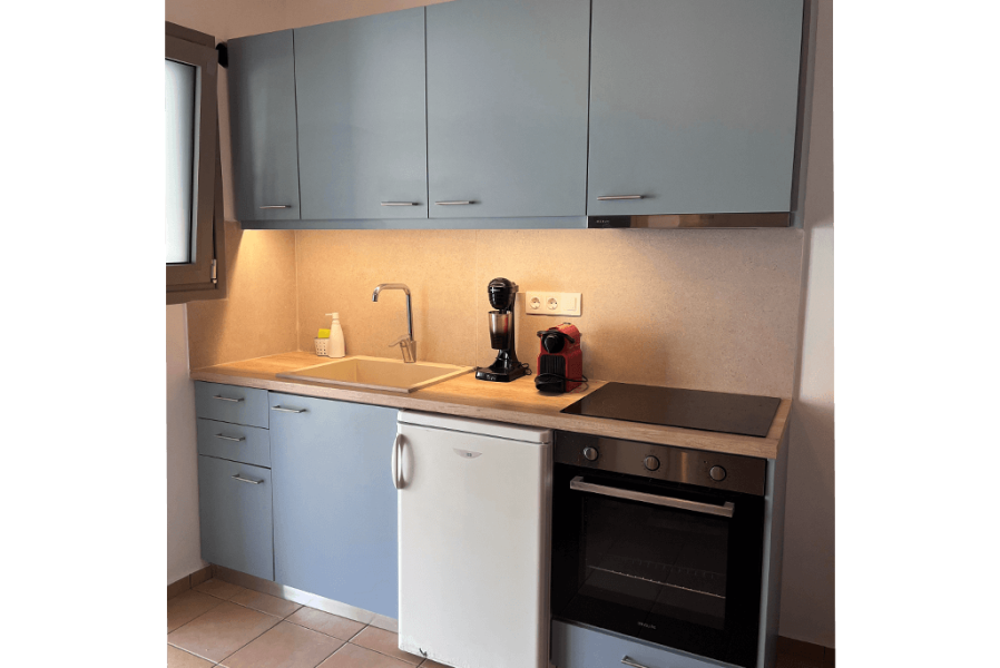 - Πλήρως εξοπλισμένη κουζίνα (Μαγειρικά σκεύη, καφετιέρες Espresso, γαλλικού).